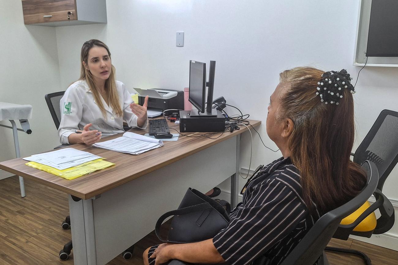 Realizando a prevenção, a usuário assistida pelo Centro, Renata Cordeiro, de 59 anos, tem em seu cronograma de reabilitação o acompanhamento com a especialidade em cardiologia há mais de um ano.
