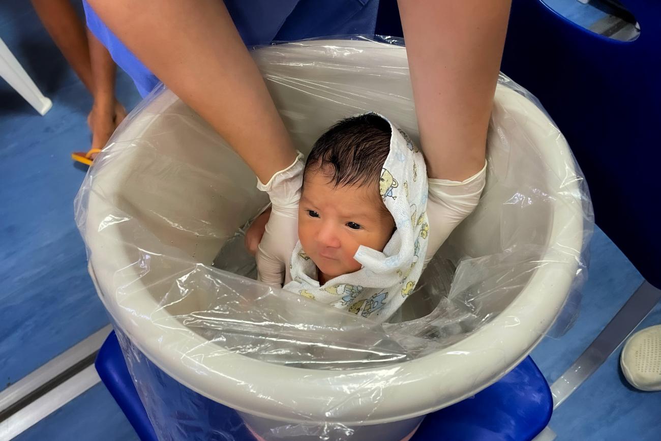 Marciele Silva dos Santos, mãe da Ingrid Vitória, participou da oficina de ofuroterapiaO Hospital Regional Dr. Abelardo Santos (HRAS), em Belém, destaca-se pelo compromisso em oferecer cuidados especializados à saúde do recém-nascido. A instituição adota diversas abordagens integradas, que incluem, por exemplo, os serviços de Terapia Ocupacional (TO), essenciais para a promoção da saúde e a prevenção de doenças dos bebês internados no complexo neonatal.