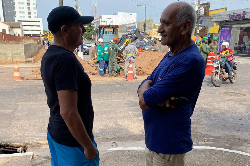 Moradores do bairro Centro, em Santarém, Genésio e Valério Augusto residem há mais de 50 anos na avenida São Sebastião. Nesta semana, eles acompanharam o trabalho de equipes técnicas da Companhia de Saneamento do Pará (Cosanpa) para a identificação e retirada de um vazamento oculto que estava impactando no abastecimento da região.