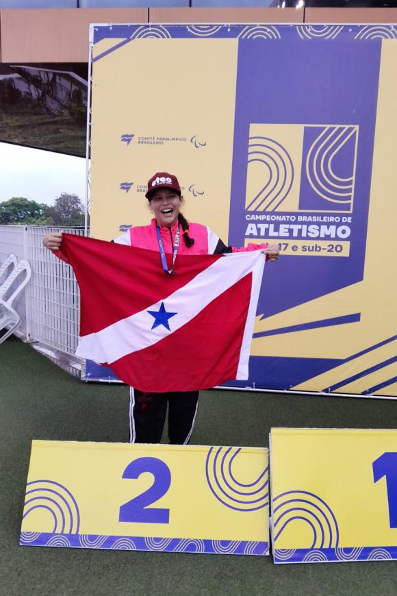A paratleta Emanuelly Braga, de 17 anos, representou o Pará na 3ª edição do Campeonato Brasileiro de Atletismo Paralímpico Sub-20, e subiu no pódio conquistando a medalha de prata, na prova Petra. A jovem é atendida pelo programa Parádesporto do Governo do Pará, com gestão da Secretaria de Estado de Esporte e Lazer (Seel). O Brasileiro de Atletismo Paralímpico, organizado pelo Comitê Paralímpico Brasileiro, ocorreu entre os dias 18 a 20 de outubro, em São Paulo.