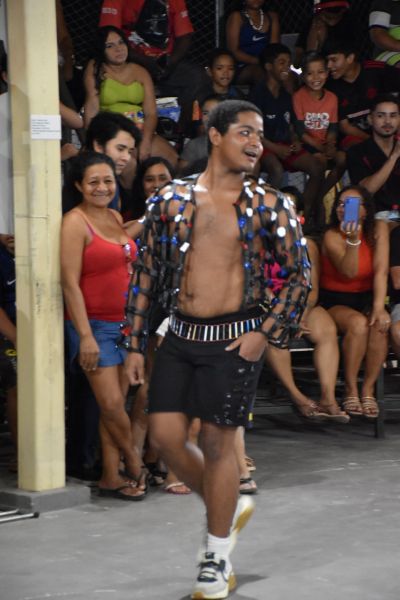 Em noite marcada por muita festa, em comemoração aos dois anos de funcionamento da Usina da Paz Terra Firme, em Belém, nesta sexta-feira (6), a Secretaria de Ciência, Tecnologia e Educação Superior, Profissional e Tecnológica (Sectet) contribuiu com o evento levando educação ambiental em forma de desfile de moda, apresentado pela turma do curso de Costura e Moda, dentro do complexo comunitário. Plásticos, papéis e até sementes deram vida a vestidos, bolsas e acessórios feitos pelos próprios alunos.