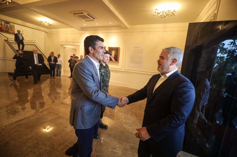 Ao lado da vice-governadora, Hana Tuma, o governador Helder Barbalho recebeu, nesta quarta-feira (18), uma visita institucional do ex-presidente da Colômbia, Iván Duque. O encontro abordou temas relacionados a agenda verde e a 30ª Conferência das Partes da Convenção-Quadro das Nações Unidas sobre Mudança do Clima (COP 30), que acontece em novembro de 2025, em Belém.