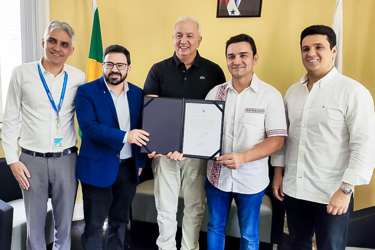 Na manhã desta sexta-feira (27), o Ministério do Turismo (MTur) e a Secretaria de Turismo do Pará (Setur) oficializaram um convênio para a implantação da sinalização turística em Belém. A cerimônia, realizada no gabinete da Setur, contou com a presença do ministro do Turismo, Celso Sabino, e do secretário de Turismo do Pará, Eduardo Costa, além de representantes da Caixa Econômica Federal, financiadora da empreitada.