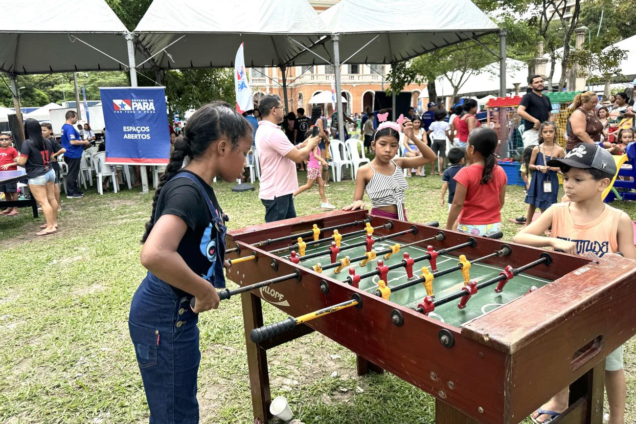 Mas foi no espaço dedicado às crianças e adolescentes, promovido pela Fundação ParáPaz, que a alegria tomou conta. Através do projeto ‘Espaços Abertos’, diversas atividades recreativas e educativas foram realizadas, incluindo jogos de tabuleiro, tênis de mesa, brinquedos infláveis e oficinas pedagógicas. Além disso, 500 brinquedos foram distribuídos, sendo 250 para meninas e 250 para meninos.