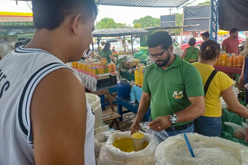 Agricultura familiar - O espaço funciona entre quinta-feira e sábado, recebendo cerca de 200 produtores de Santarém, Belterra e Mojuí dos Campos, que fazem parte da Associação dos Produtores Rurais de Santarém (Aprusan). Com a nova estrutura, os feirantes constatam o aumento de clientes e das vendas nos últimos seis meses.