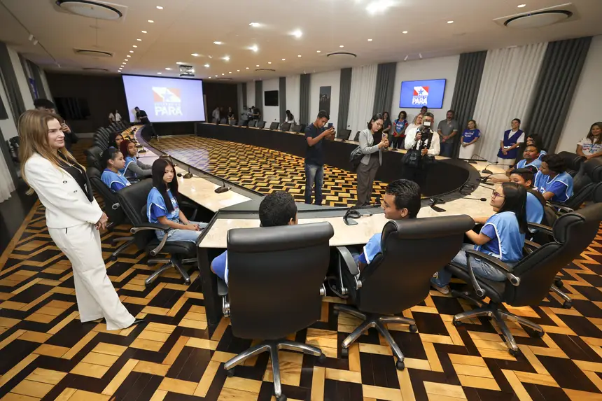 Jovens atendidos pela Usina da Paz de Marituba tiveram a oportunidade de visitar o Palácio dos Despachos, sede do Governo do Estado do Pará, durante a manhã de hoje (3). A visita, que incluiu uma conversa com a primeira dama, Daniela Barbalho, e a entrega de veículos para a Secretaria de Estado de Meio Ambiente e Sustentabilidade (Semas), foi marcada por momentos de inspiração e aprendizado.