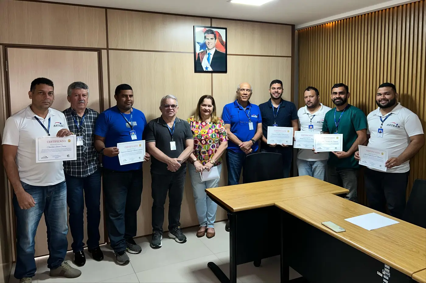 Servidores certificados, acompanhados da diretoria da Artran e da representante do RH da Agência