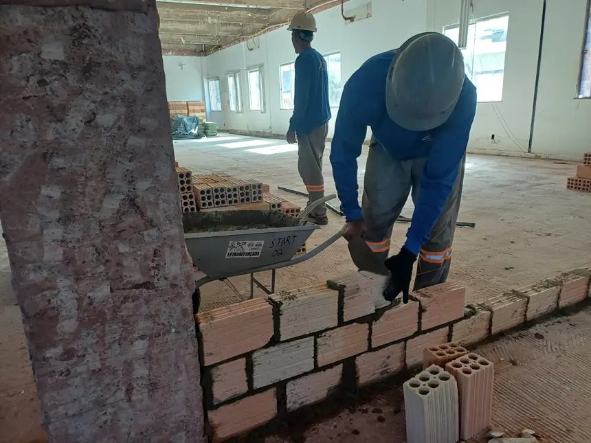 “A obra da Estação Cidadania de Santarém segue em pleno desenvolvimento para trazer mais conforto, modernidade, segurança e infraestrutura na prestação de serviços à população e aos servidores que trabalham na unidade. Já realizamos a impermeabilização de calhas e rufos, garantindo proteção contra infiltrações e aumentando a durabilidade das estruturas; a revitalização total do telhado; remoção e preparação de pisos, revestimentos e forros antigos para instalação de novos acabamentos e início da adequação das redes elétrica e hidrossanitária. Até a conclusão das obras da unidade de Santarém, os atendimentos à população estão sendo realizados provisoriamente no Terminal Hidroviário Joaquim da Costa Pereira”, explicou Derlon Silva, coordenador do setor de Arquitetura e Engenharia da Seplad.