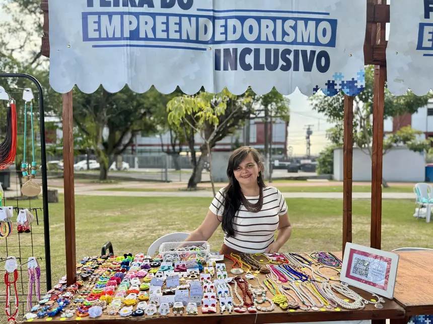 Entre os expositores desta edição está Andrea Barradas, mãe de uma jovem com autismo e empreendedora. Ela já atua no mercado com produtos voltados para diferentes públicos, e embora tenha experiência com vendas, esta é a primeira vez que participa da Feira do Empreendedorismo Inclusivo.