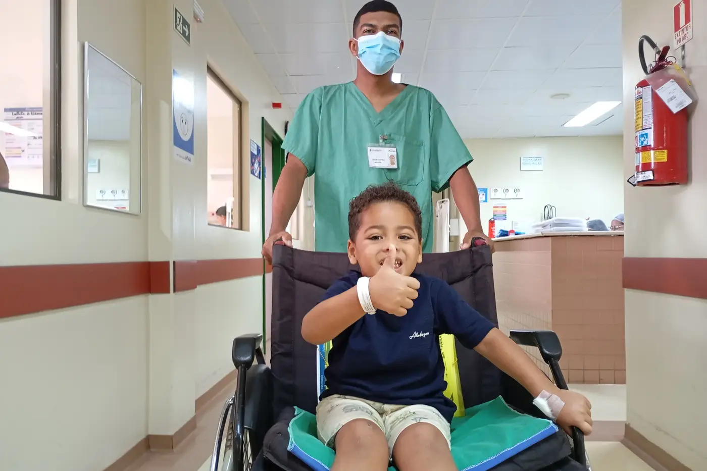 “Confesso que fiquei com um pouco de medo no começo por ser uma cirurgia, mas a equipe está de parabéns, desde a portaria, os enfermeiros, as atendentes, têm uma atenção muito grande, um carinho com a gente. Estou indo feliz porque meu filho vai pra casa recuperado”, comemora a mãe de Weverton.