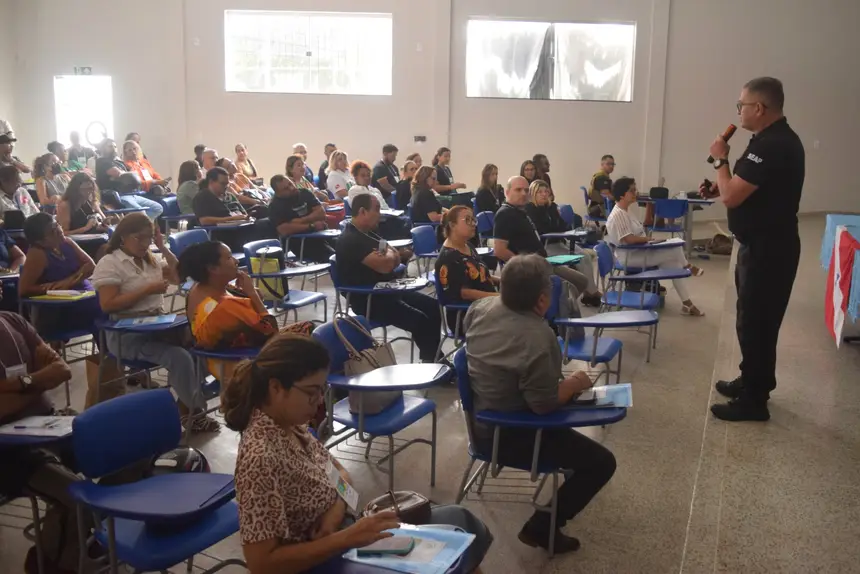 A Secretaria de Estado de Educação (Seduc), em parceria com a Secretaria de Estado de Administração Penitenciária (Seap) realizaram, na manhã de hoje uma capacitação voltada para os servidores das duas instituições para esclarecer sobre o Manual de Procedimento Operacional adotado pela Seap. O titular da Secretaria Adjunta de Gestão Operacional (Sago) da Seap, Ringo Alex Rayol Frias, ministrou a palestra, convidado pela Coordenadoria de Educação de Jovens e Adultos da Seduc.