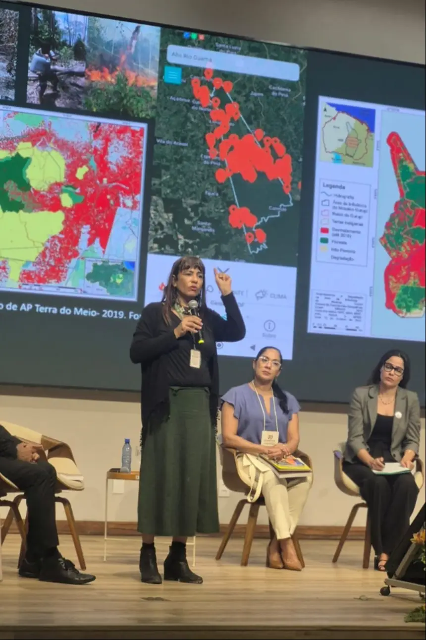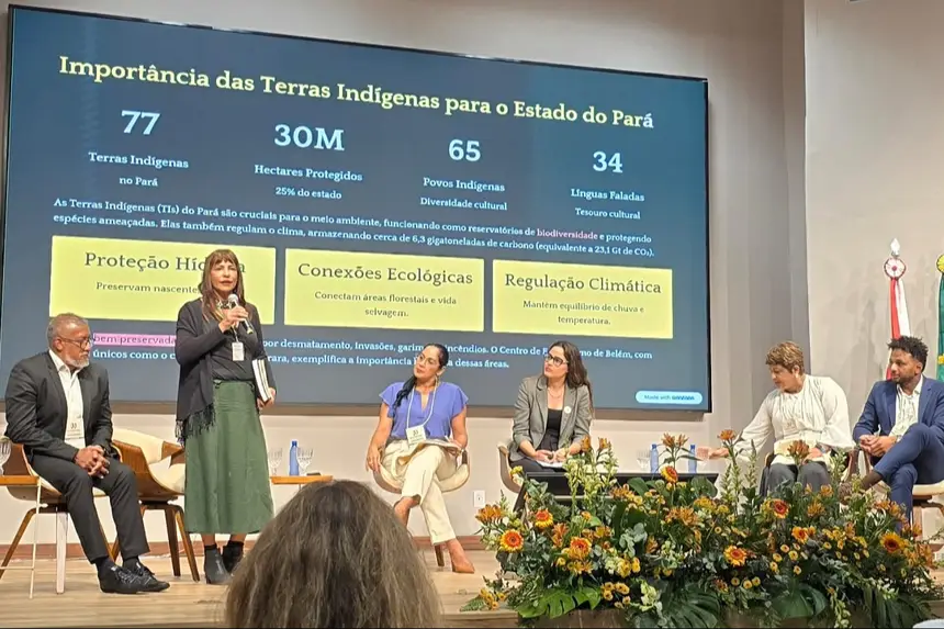 Na oportunidade, o Instituto foi representado pela analista ambiental Cláudia Kahwage, que apresentou ainda uma nota técnica inédita que aborda a atuação dos órgãos estaduais na gestão ambiental de Terras Indígenas no Pará, enfatizando o papel estratégico desses territórios na proteção da biodiversidade e no enfrentamento das mudanças climáticas.