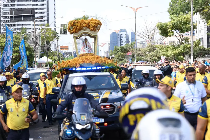 Trânsito - Os órgãos de segurança e trânsito, estaduais e municipais, farão a interdição das principais vias e no entorno do percurso das procissões do Círio de Nazaré 2025, especialmente, no sábado (11), e domingo (12), quando ocorrem a Moto Romaria, Trasladação e Círio, respectivamente.