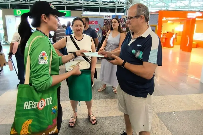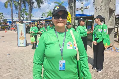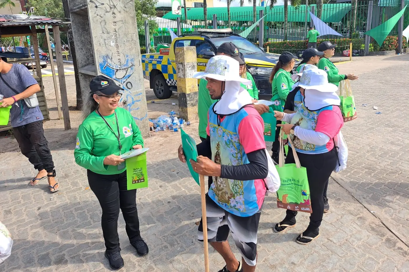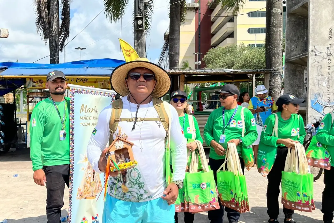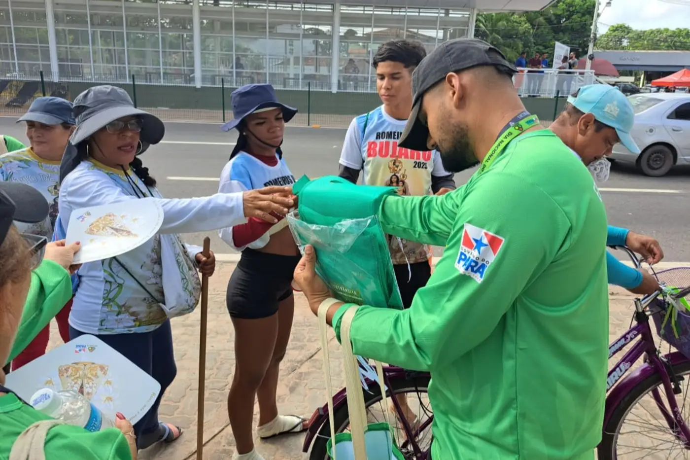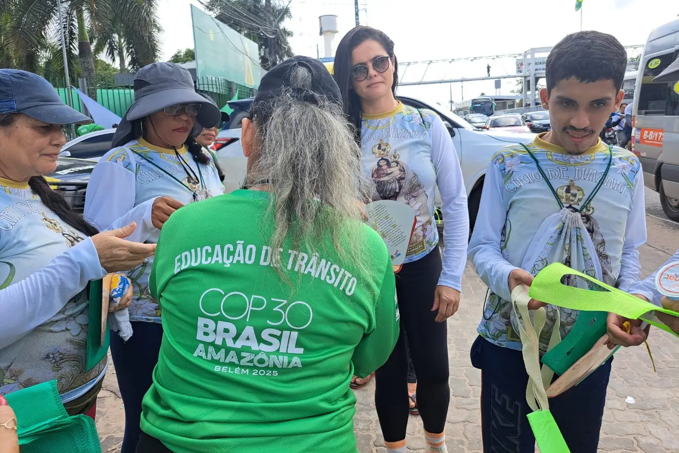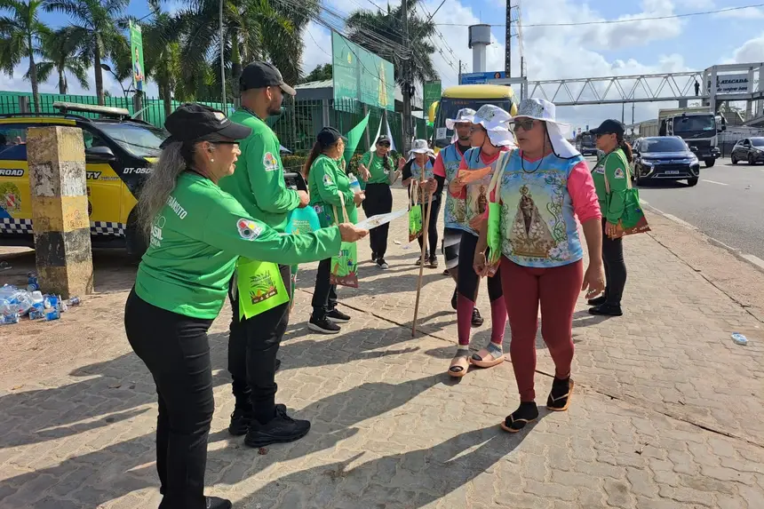 Com foco nos promesseiros que caminham pela rodovia até a Basílica Santuário, os agentes abordaram quem passava pelo local, acolhendo e explicando sobre como transitar em segurança. "Estamos explicado sobre como eles podem finalizar a caminhada sem correr risco, transitando exclusivamente pelas calçadas, sem acessar as pistas principais da rodovia e respeitando a sinalização. Estamos fazendo a acolhida também, distribuindo a sacola ecológica, o lixocar, para que eles tenham essa consciência ambiental ao chegar para o Círio", explica a coordenadora de educação, Celina Koury.