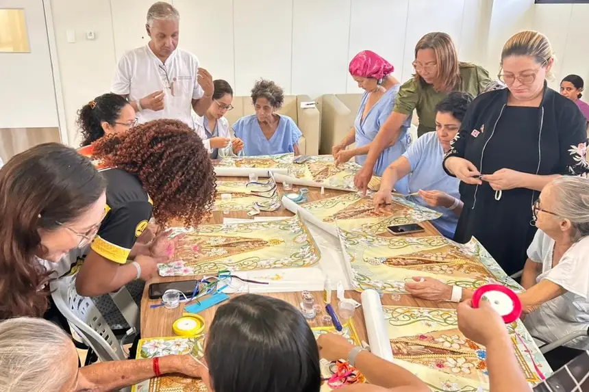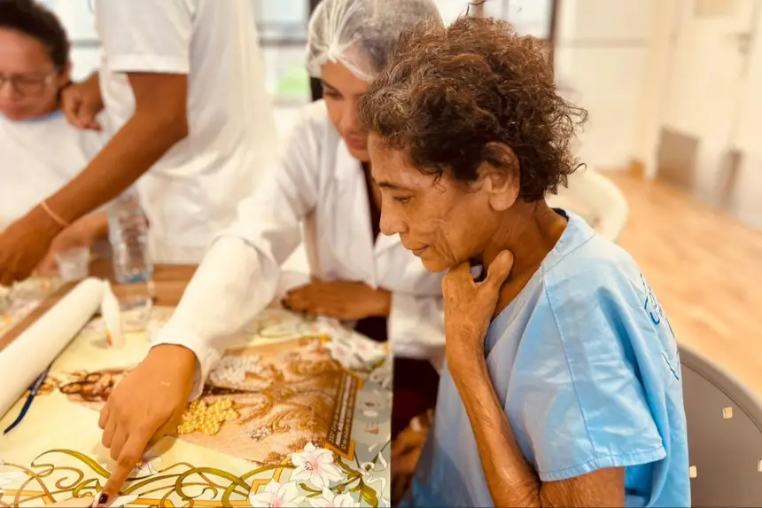 Com o uso de adereços, fitas coloridas e muita criatividade, as pacientes internadas no Hospital da Mulher do Pará (HMPA), em Belém, participaram de uma atividade especial de confecção e enfeite de cartazes alusivos ao Círio de Nazaré, nesta sexta-feira (10). A ação foi promovida pela equipe de terapia ocupacional. Ao unir fé e reabilitação, o momento transformou o ambiente hospitalar em um espaço de acolhimento, espiritualidade e esperança.
