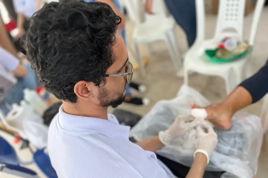 No trajeto de cerca de 300 quilômetros a pé de Cametá, no nordeste paraense, até Belém, o promesseiro Arodinaldo Gaia de Souza, conhecido como "Professor Arogas”, 59 anos, ganhou o cuidado oferecido pelo Hospital Metropolitano de Urgência e Emergência (HMUE), nesta sexta-feira (10). Ele esteve entre as 344 pessoas atendidas no Ponto de Acolhimento Assistencial e de Humanização do HMUE, que há 14 anos garantem apoio aos promesseiros.