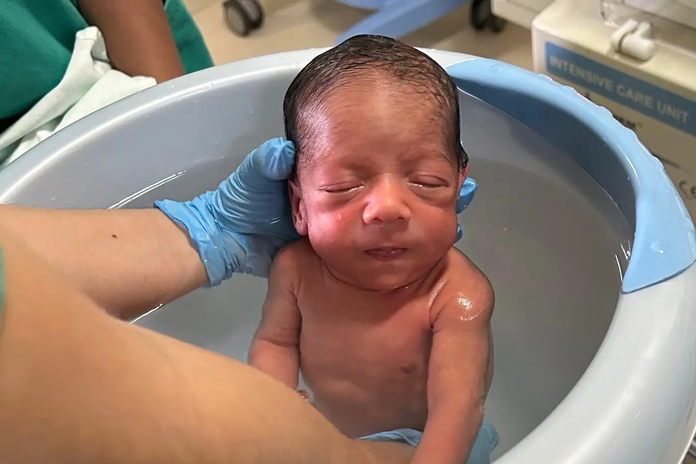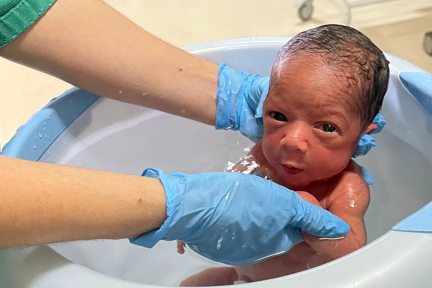 Humanização - Entre as estratégias de humanização do cuidado neonatal adotadas pelo HRPM está o banho de ofurô, também conhecido como banho terapêutico. A técnica consiste em posicionar o recém-nascido em um balde ou recipiente próprio com água morna, de forma que o bebê permaneça encolhido em uma postura semelhante a que tinha dentro do útero materno.