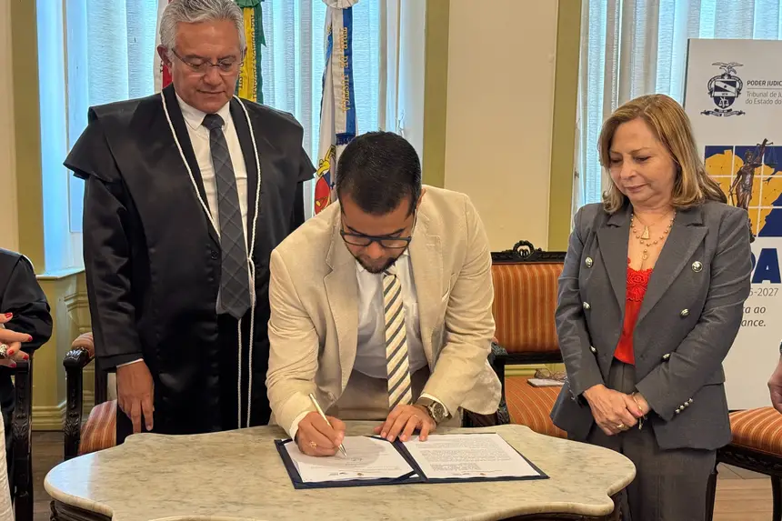 Na manhã desta quarta-feira (15), o Governo do Pará, a Academia Paraense de Música (APM) e o Tribunal de Justiça do Estado do Pará (TJPA) firmaram parceria para a realização do projeto “Amazônia Resistência: Um desfile em movimento”, que integra jovens atendidos no programa TerPaz, por meio da Secretaria de Articulação da Cidadania (Seac), e custodiadas integrantes da Cooperativa Coostafe, por meio da Secretaria de Administração Penitenciária (Seap). A assinatura do termo de fomento do projeto — que tem articulação e promoção da Secretaria de Estado de Cultura (Secult) — ocorreu no Salão Nobre da Presidência do Tribunal de Justiça.