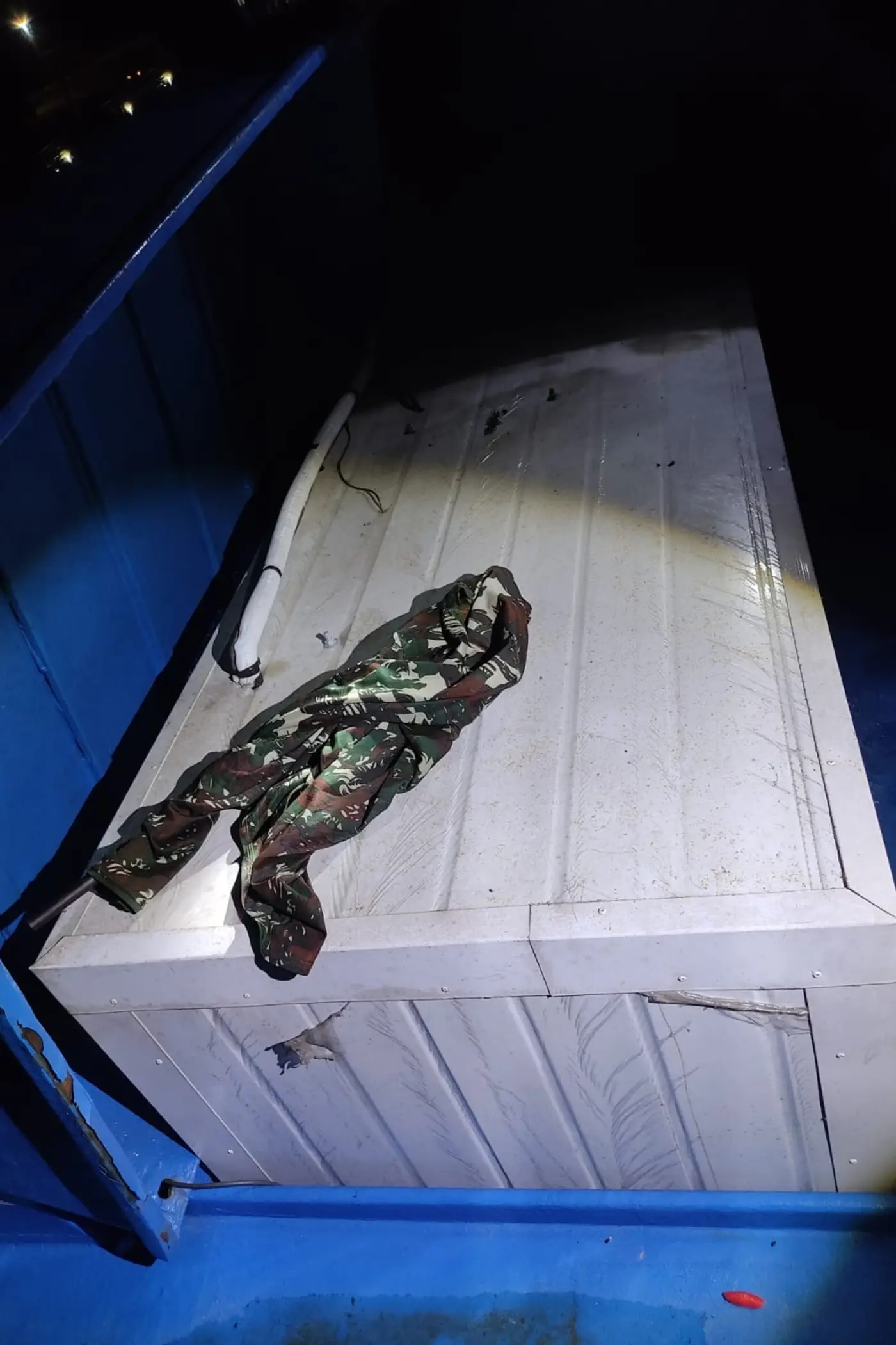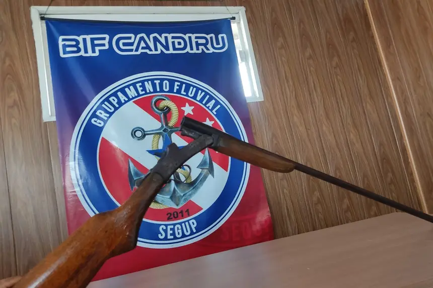 Durante as buscas, que fazem parte da ação dos agentes, uma espingarda calibre 28 foi encontrada escondida embaixo de uma caixa d’água. Diante do ilícito, os tripulantes da embarcação foram conduzidos à Base Candiru para prestar esclarecimentos e a arma de fogo foi apreendida.