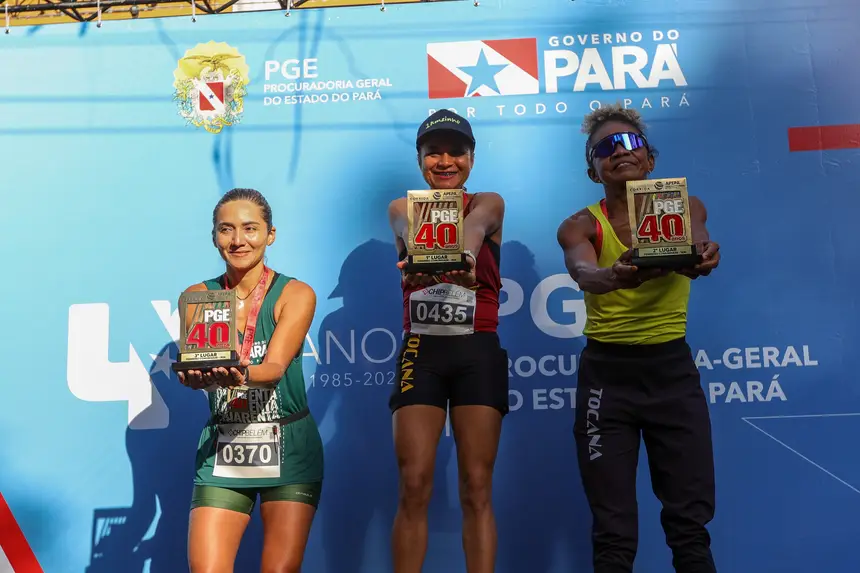 Na categoria “Geral Feminino”, foram premiadas: Iza Cunha (1º); Silvana Pacheco (2º); e Deuziane Oliveira (3º). “Para mim, é uma grande honra participar, por ser os 40 anos da PGE, e estar aqui é uma satisfação muito grande, porque trabalhar, cuidar dos filhos, da casa, ter aquele tempo de madrugada pra treinar e chegar aqui. E conseguir o título de campeã, é uma satisfação muito grande. Então, parabéns pela organização, parabéns aos 40 anos da PGE”, disse Iza Cunha, promotora de vendas.