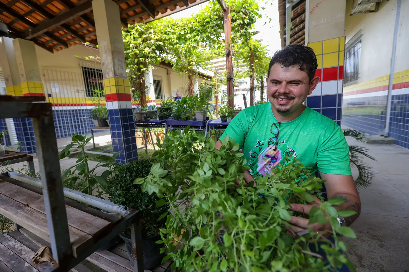 A Escola Estadual Professora Ruth dos Santos Almeida, em Belém, é exemplo da iniciativa. Formador da Diretoria Regional de Ensino (DRE) 9, da Seduc, o professor de matemática Antônio Sales é um dos maiores incentivadores da horta, que é componente do Projeto Permanente por Afinidade (PPA), nas escolas de tempo integral. A ideia é que os alunos trabalhem as matérias curriculares em atividades extraclasse.