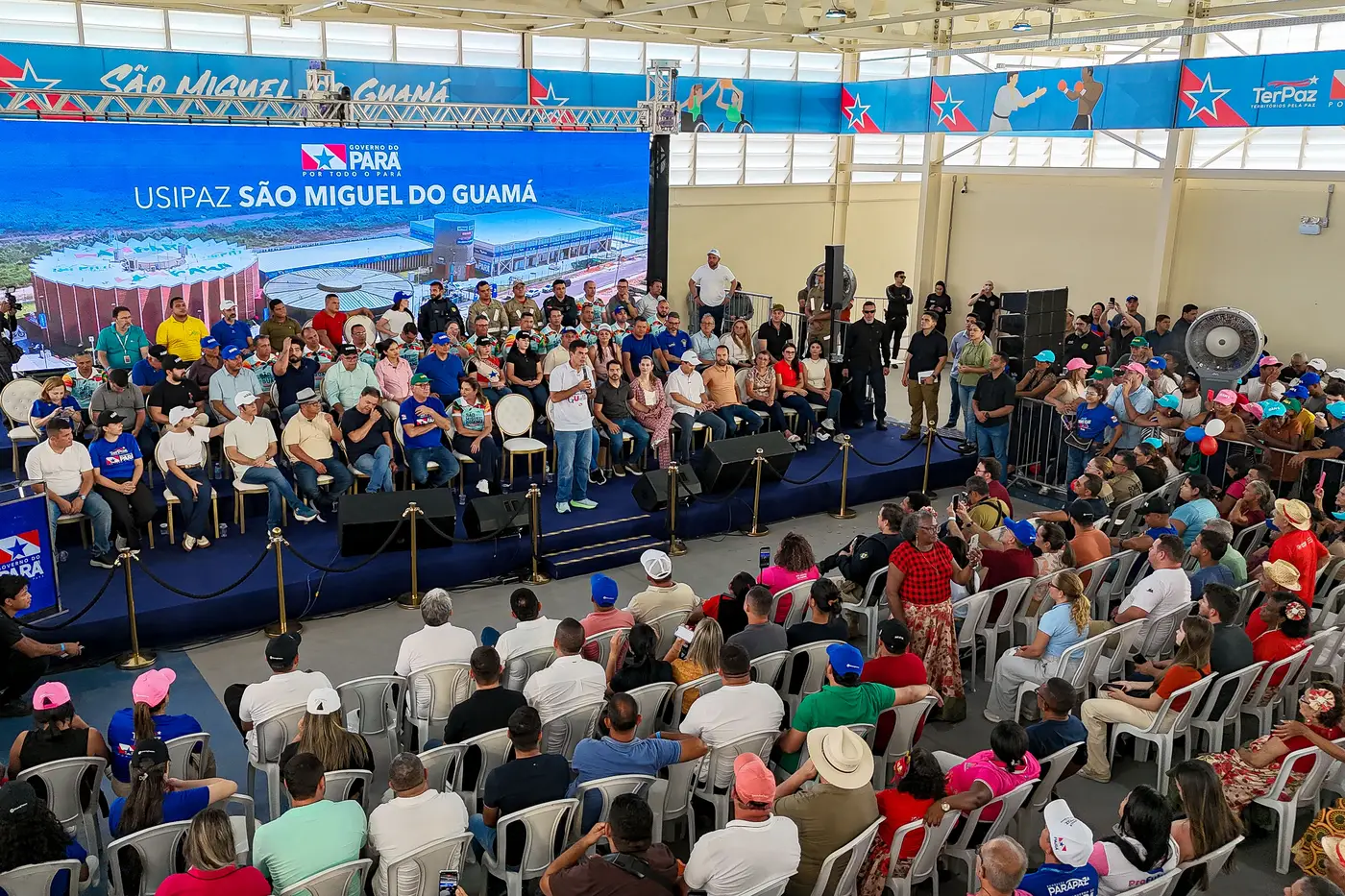 O governo do Estado entregou, nesta sexta-feira (24), a 18ª Usina da Paz do Pará, no município de São Miguel do Guamá, no nordeste paraense. A nova unidade do maior complexo de cidadania da América Latina chegou para integrar a política pública do programa Territórios pela Paz (TerPaz) e, a partir de agora, se tornar uma referência na garantia de cidadania, oportunidades e inclusão social para milhares de famílias. A entrega do novo equipamento público também é um presente à população local pelo aniversário de 152 anos de fundação da cidade, celebrados no próximo dia 31 de outubro.