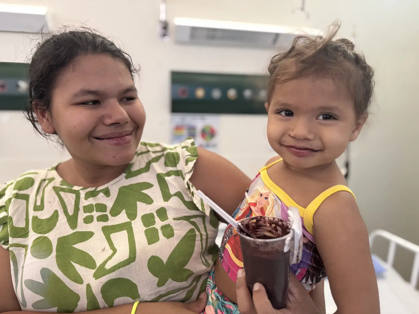 Pediatria - A ação também encantou os acompanhantes e pacientes pediátricos. Amanda Santos, 23 anos, mãe de Mirela Santos, 2 anos, contou que a filha ficou animada ao receber o alimento com o almoço. “A Mirela ficou toda feliz. Ela adora açaí e foi muito bonito ver a alegria dela aqui dentro do hospital”, disse a mãe.