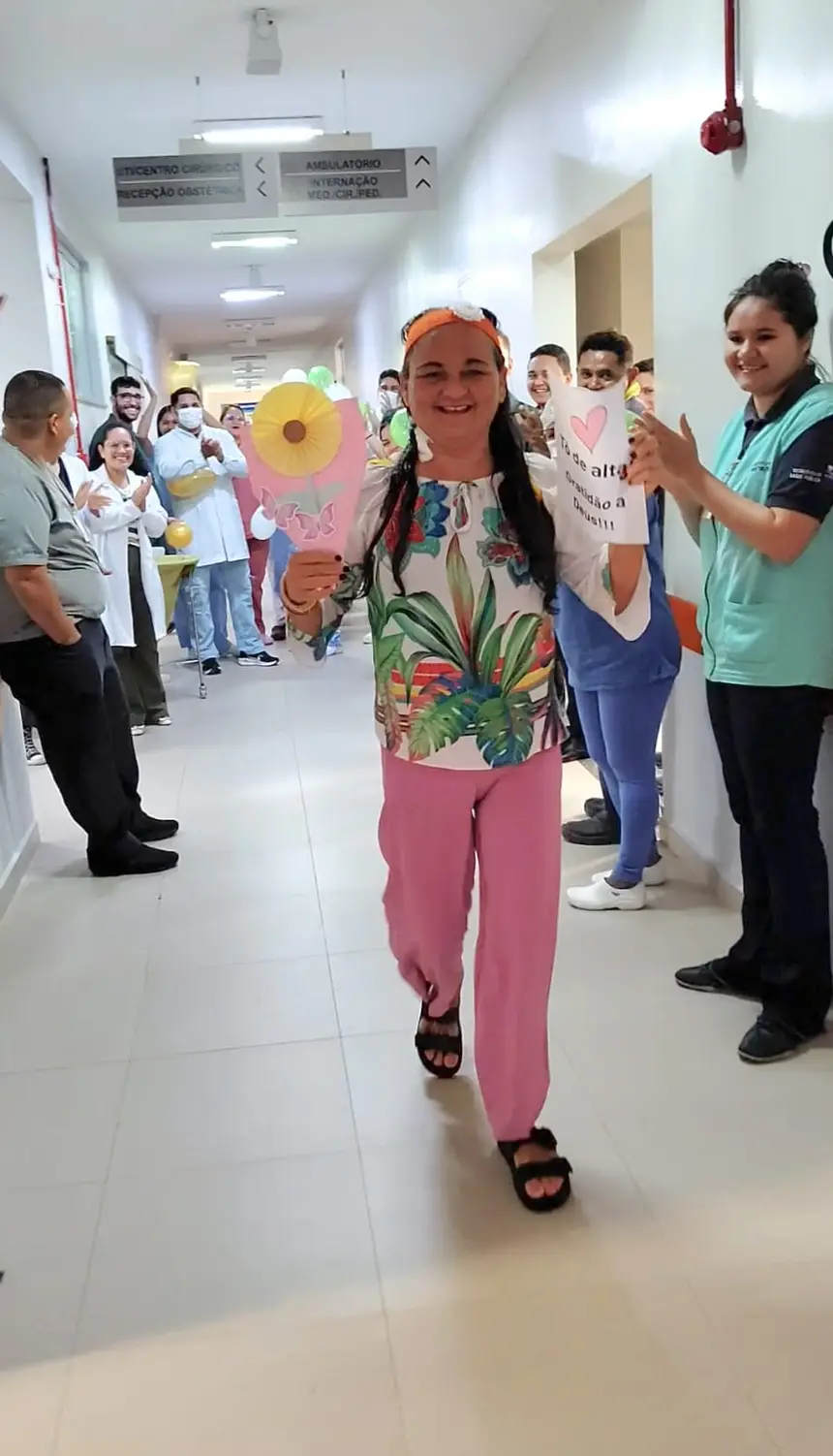 A iniciativa busca valorizar o momento da alta médica como símbolo de superação, promovendo acolhimento e reforçando o vínculo entre paciente, familiares e equipe de saúde. Ao deixar o hospital, Maria Cristina foi recebida por um corredor humano formado por colaboradores e profissionais da enfermagem, celebrando sua recuperação com aplausos, flores artesanais e palavras de afeto.