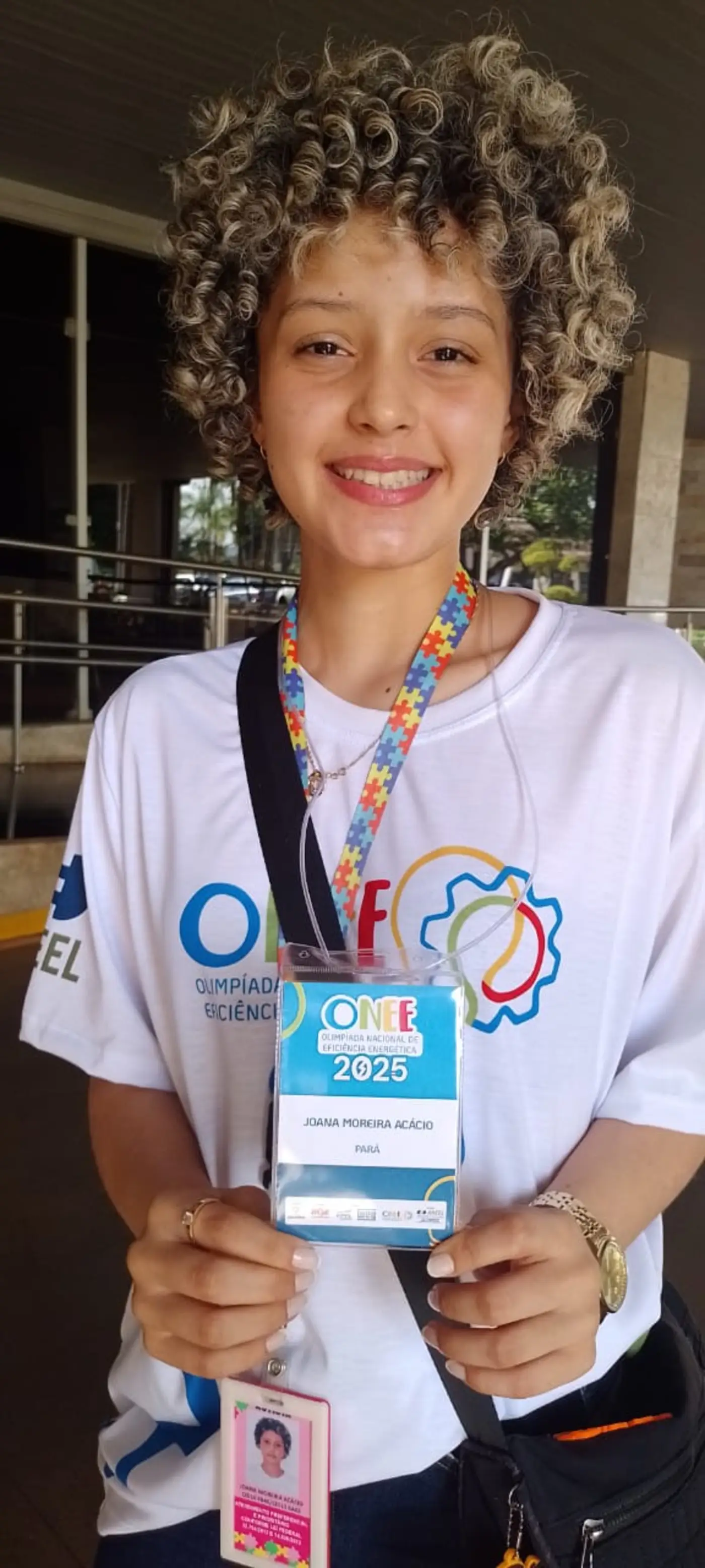 Joana conquistou a medalha de ouro nas fases classificatórias da ONEE e está representando o estado do Pará na grande final. A Olimpíada Nacional de Eficiência Energética (ONEE) é uma iniciativa da Agência Nacional de Energia Elétrica (ANEEL), que mobiliza estudantes e professores do 8° e 9º ano do ensino fundamental.