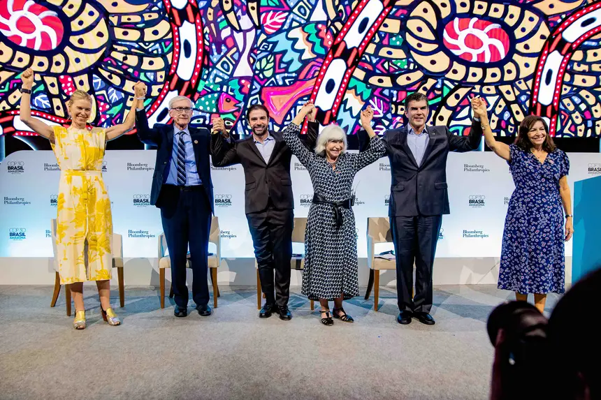 O Fórum foi encerrado com o painel “De Paris a Belém: Um Chamado à Ação”, moderado por Antha Williams (Bloomberg Philanthropies) e que contou com as participações de Laurence Tubiana, CEO da Fundação Europeia do Clima (ECF), Tony Evers, governador do estado de Wisconsin, nos Estados Unidos, e Igor Normando, prefeito de Belém. Na sequência, a prefeita de Paris, Anne Hidalgo, leu a declaração final “De Paris a Belém”, documento que expressa o compromisso dos líderes locais com a ambição climática e a cooperação internacional rumo à COP30.