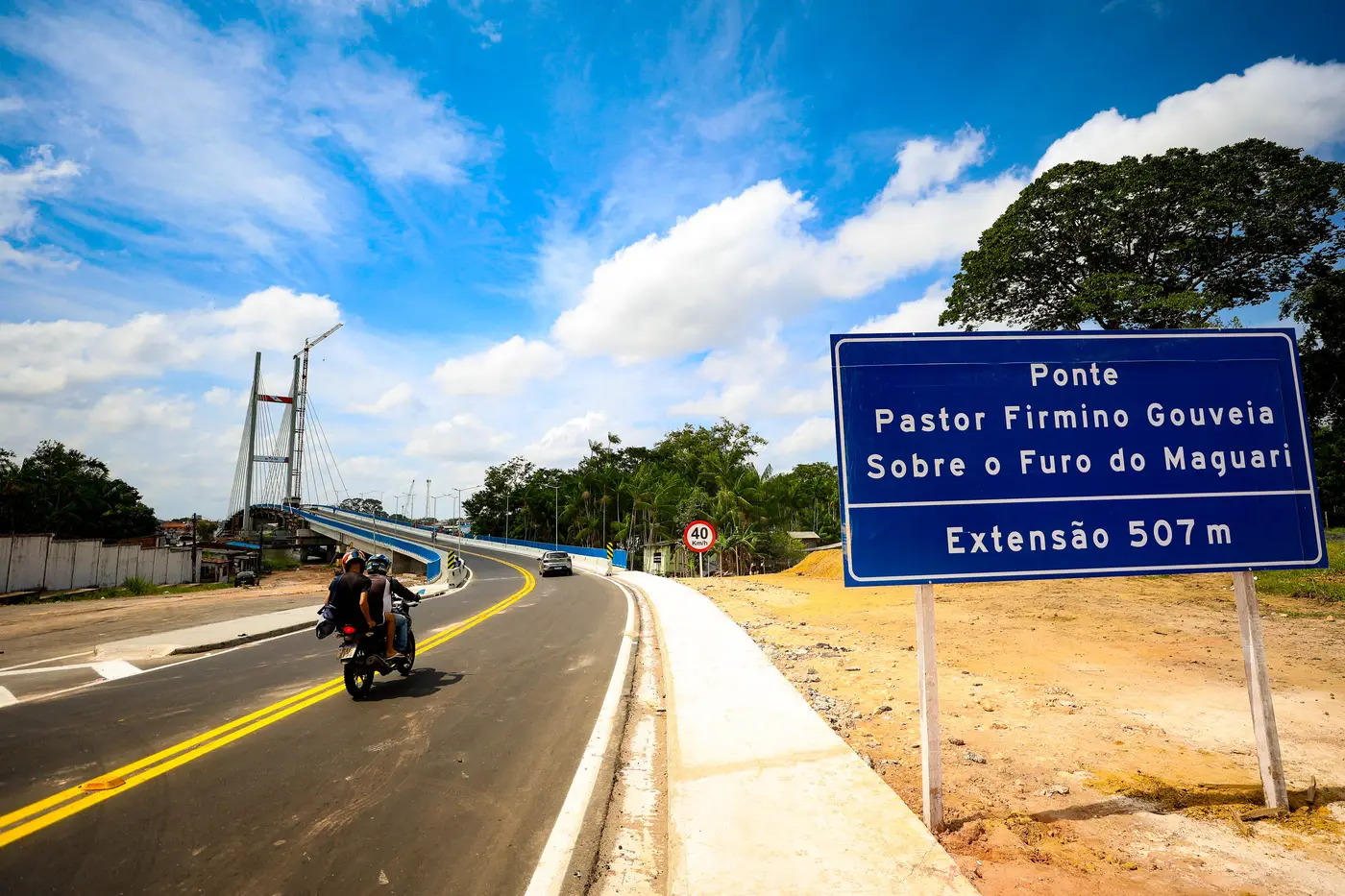 A nova ponte Pastor Firmino Gouveia, que liga os distritos de Icoaraci e Outeiro, já está mudando o dia a dia de quem vive e trabalha na Região Metropolitana de Belém (RMB). Entregue pelo governo do Estado no dia 18 de outubro, a estrutura estaiada representa um marco de modernidade, integração e desenvolvimento para cerca de 400 mil pessoas, que dependem diariamente da travessia.