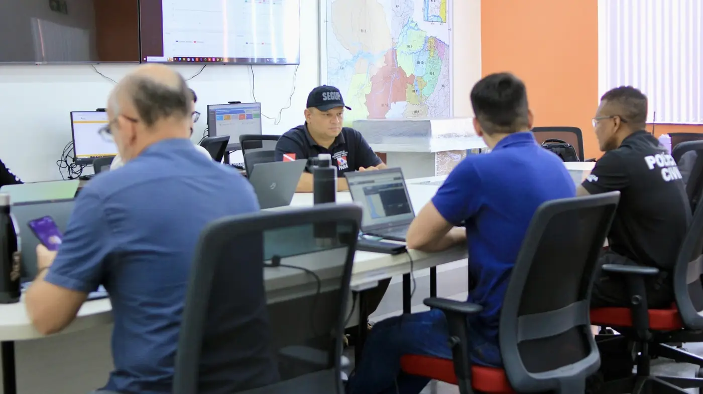 Monitoramento - Em Belém, as forças de segurança estão concentradas na Sala de Situação da Coordenadoria de Defesa Civil, no Comando-Geral do Corpo de Bombeiros Militar, recebendo informações, monitorando as informações e se comunicando com os 14 Centros Regionais espalhados pelo Estado, para recebimento e alinhamento de dados.