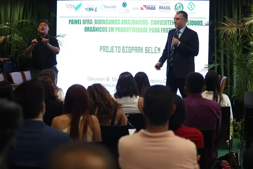O Governo do Pará, por meio da Empresa de Assistência Técnica e Extensão Rural do Estado do Pará (Emater-Pará), participou, nesta segunda-feira (10), da abertura da programação da 30ª Conferência das Nações Unidas sobre Mudança Climática do Clima (COP30), em Belém. Com o tema "Bioinsumos Amazônicos: Convertendo Resíduos Orgânicos em Produtividade para Frutíferas", em parceria com a Secretaria de Estado de Meio Ambiente, Clima e Sustentabilidade (Semas) e Universidade Federal Rural da Amazônia (Ufra).