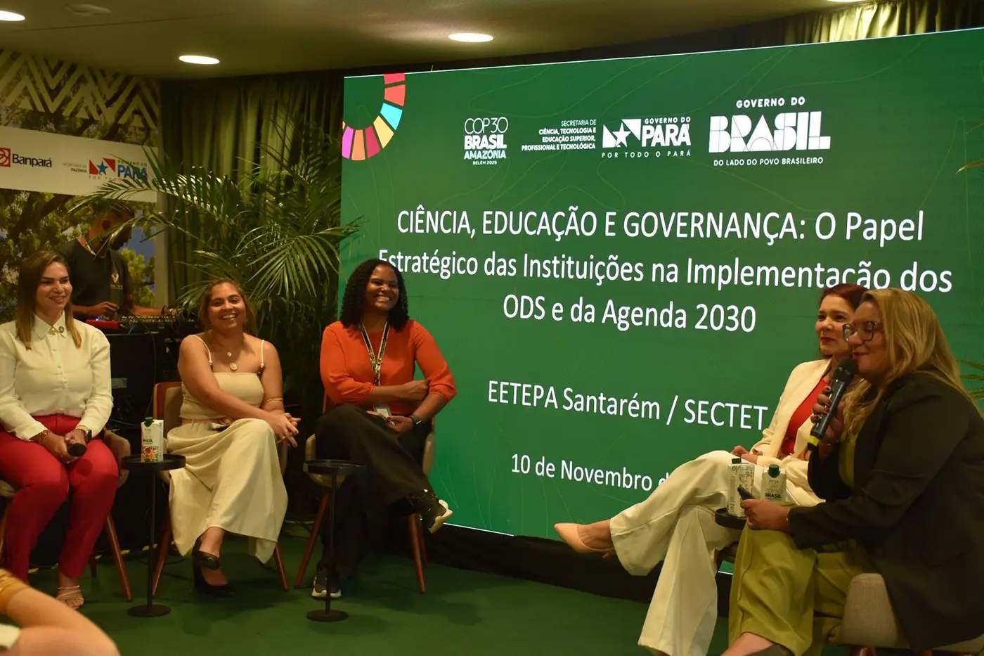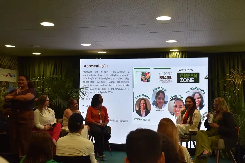 O governo do Pará, por meio da Secretaria de Estado de Ciência, Tecnologia e Educação Superior, Profissional e Tecnológica (Sectet), marcou presença na 30ª Conferência das Nações Unidas sobre Mudanças Climáticas (COP30) com a apresentação do painel “Ciência, educação e governança: o papel estratégico das instituições na implementação dos ODS e da Agenda 2030”, realizado nesta segunda-feira (10), na área verde do evento (Green Zone).