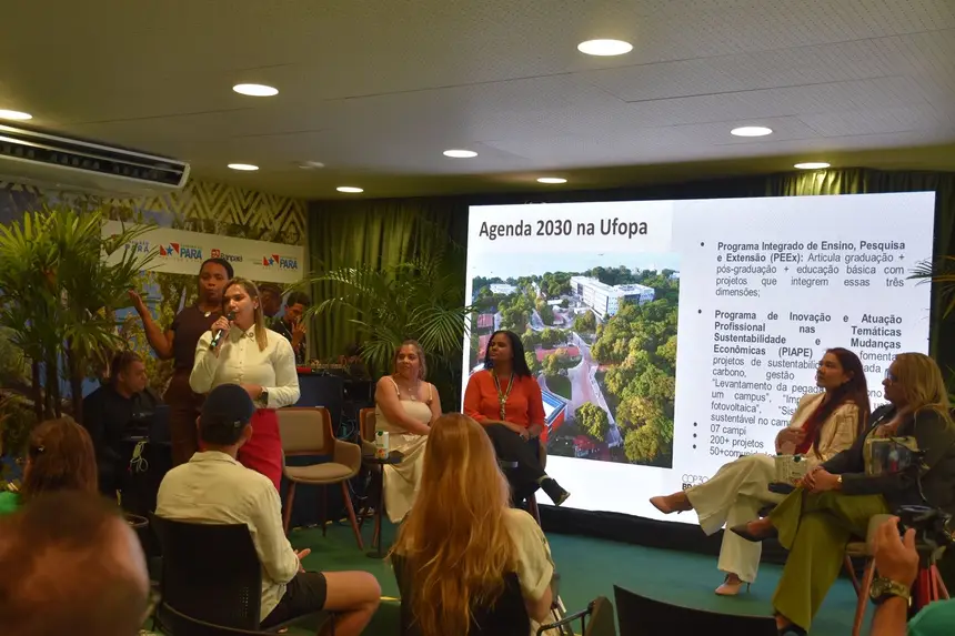 A iniciativa foi conduzida pela Escola de Ensino Técnico do Estado do Pará (Eetepa) e teve como destaque a coordenação do painel pela professora Sarah Batalha, docente da Eetepa Francisco Coimbra Lobato, localizada em Santarém. Representando o Oeste do Pará em um dos maiores eventos ambientais do mundo, a educadora expressou satisfação por levar à COP30 os resultados de uma metodologia de ensino baseada na linguagem da Agenda 2030, implementada desde 2024, com planejamento iniciado no ano anterior.