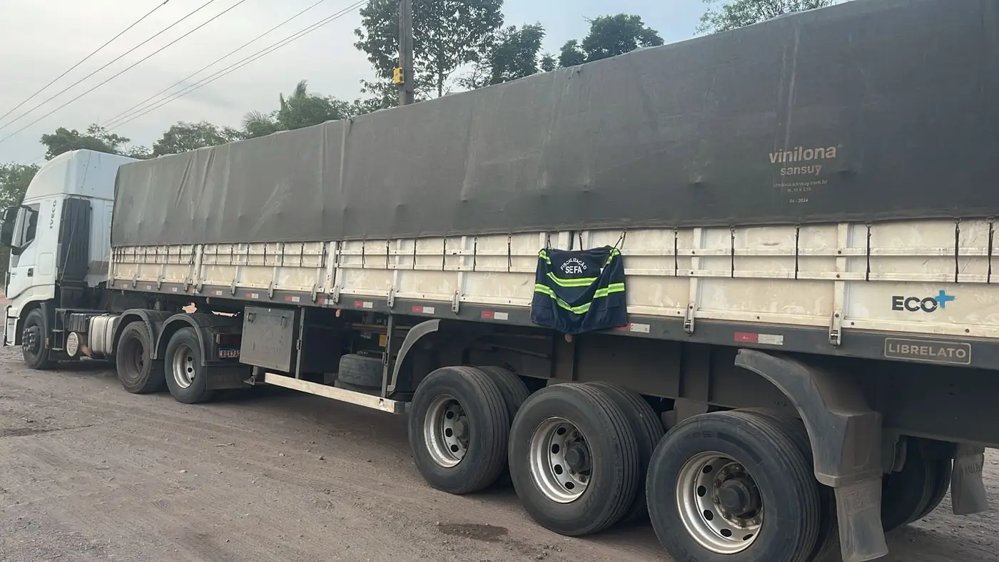 O caminhão, com mercadorias provenientes do município de Santa Quitéria/CE, com destino a Santarém, foi abordado por fiscais em Marabá