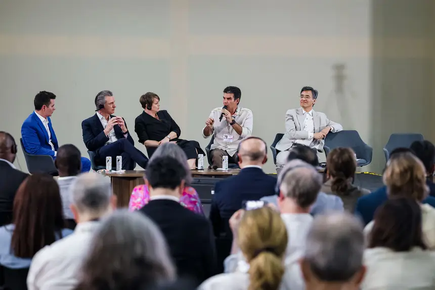 Helder Barbalho situou as cidades como eixo da adaptação. “No Brasil, 86% a 87% da população vive nas cidades. Na Amazônia, metade das pessoas vive em centros urbanos desafiadores. Precisamos de soluções de esgoto, água, áreas verdes e mobilidade limpa para reduzir a pressão sobre a floresta e garantir bem-estar.” Ao relacionar clima e vida cotidiana, ele enfatizou que decisões globais só se materializam quando chegam ao bairro, à comunidade ribeirinha e à periferia urbana.