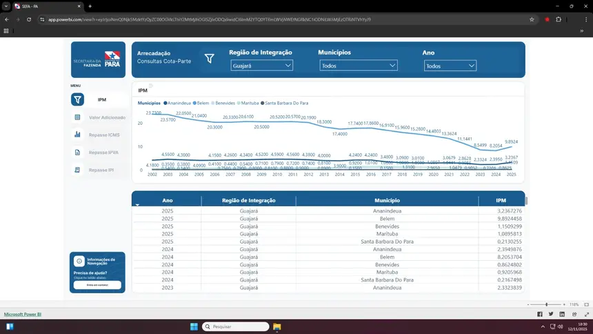 A partir deste mês de novembro, a Secretaria da Fazenda do Pará (Sefa) passou a oferecer, no seu site, o Painel da cota-parte dos municípios, plataforma digital que disponibiliza ao público, em geral, e em especial aos gestores públicos municipais, informações sobre as receitas de impostos estaduais e federais repassadas aos municípios paraenses, de forma transparente e acessível.