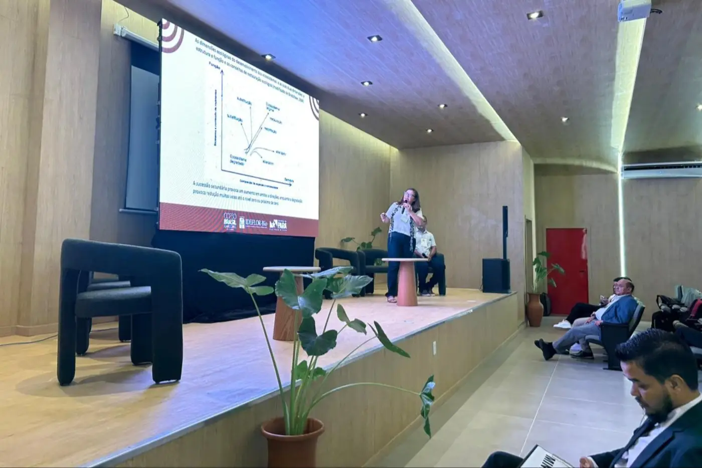 Logo nas primeiras horas da manhã, o público foi convidado a refletir sobre o potencial das práticas sustentáveis de baixo custo na recuperação da vegetação nativa, em palestra ministrada pela diretora do Instituto de Ciências Agrárias (ICA) da Universidade Federal Rural da Amazônia (UFRA), Gracialda Ferreira, Gustavo Schwart (Embrapa Amazônia Oriental) e Divino Silvério (UFRA). As discussões evidenciaram que inovação e simplicidade podem caminhar juntas na restauração de ecossistemas degradados, gerando benefícios sociais e ambientais duradouros.