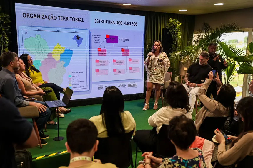 Com o tema: “Rede de Sementes e Mudas do Pará: Inclusão Produtiva e Restauração para uma Economia da Floresta em Pé”, foi apresentado dentro da programação do Pavilhão Pará na Conferência das Nações Unidas sobre Mudanças Climáticas, a COP 30, nesta quarta-feira (12) os projetos Sistemas Agroflorestais (PROSAF) e Rede de Sementes do Estado do Pará, desenvolvidos pelo Instituto de Desenvolvimento Florestal e da Biodiversidade do Pará (Ideflor-Bio).