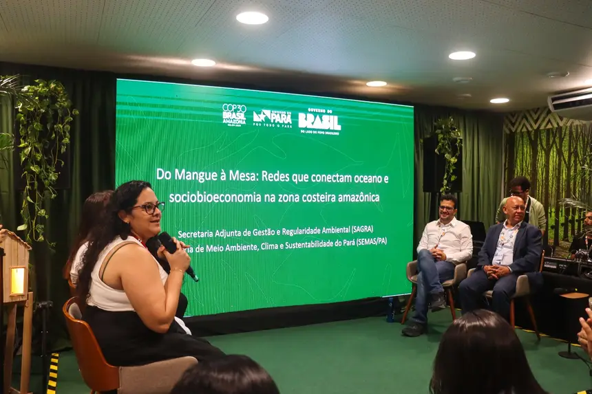 O painel “Do mangue à mesa: redes que conectam oceano e sociobioeconomia na zona costeira amazônica”, realizado no Pavilhão Pará (Sala Seringueira), reuniu gestores públicos, pesquisadores e representantes de comunidades extrativistas para debater estratégias que unem conservação ambiental, geração de renda e inovação social. Representando a Secretaria de Meio Ambiente, Clima e Sustentabilidade (Semas), o secretário adjunto reforçou que a zona costeira precisa ganhar protagonismo nas agendas de sustentabilidade.