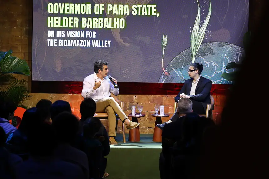 Durante a conversa, Helder apresentou resultados ambientais e econômicos alcançados pelo Estado, destacando a redução histórica do desmatamento e o fortalecimento da fiscalização, do planejamento territorial e das políticas climáticas — como o Plano Amazônia Agora, a Política Estadual sobre Mudanças Climáticas e o Plano de Bioeconomia.