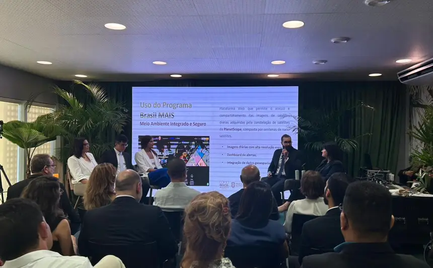 Luana Oliveira, coordenadora de operações da empresa que administra o georreferenciamento da plataforma Brasil M.A.I.S, que auxilia com o monitoramento remoto em alta resolução do território nacional, destacou a importância da parceria e o uso de novas tecnologias pelos agentes de segurança.