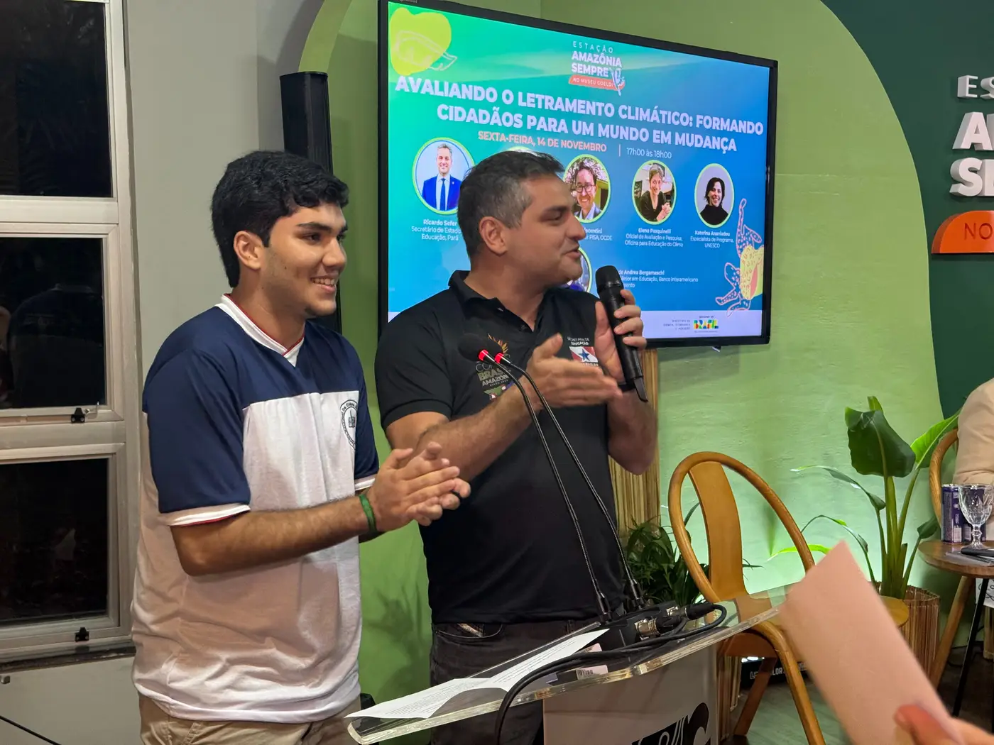 “Pela primeira vez no mundo é aplicada uma avaliação voltada para os nossos jovens, uma parceria da Seduc com a OCDE que aplica a prova já há alguns anos em vários países do mundo, países signatários, mas sempre abordando as questões relacionadas a Matemática, Linguagem e Ciências. Então, já tem um estudo da OCDE para que se aplique, a partir de 2029, uma avaliação também sobre a alfabetização climática, e o Pará e o Brasil, foi escolhido como piloto para ser aplicado em nossa rede. E hoje nós estamos aqui para celebrar a entrega desse relatório e, principalmente, para a gente se certificar o nosso aluno que teve a maior nota, uma nota excelente acima de 93 pontos, de uma escala que vai de 0 a 100”, explicou o professor