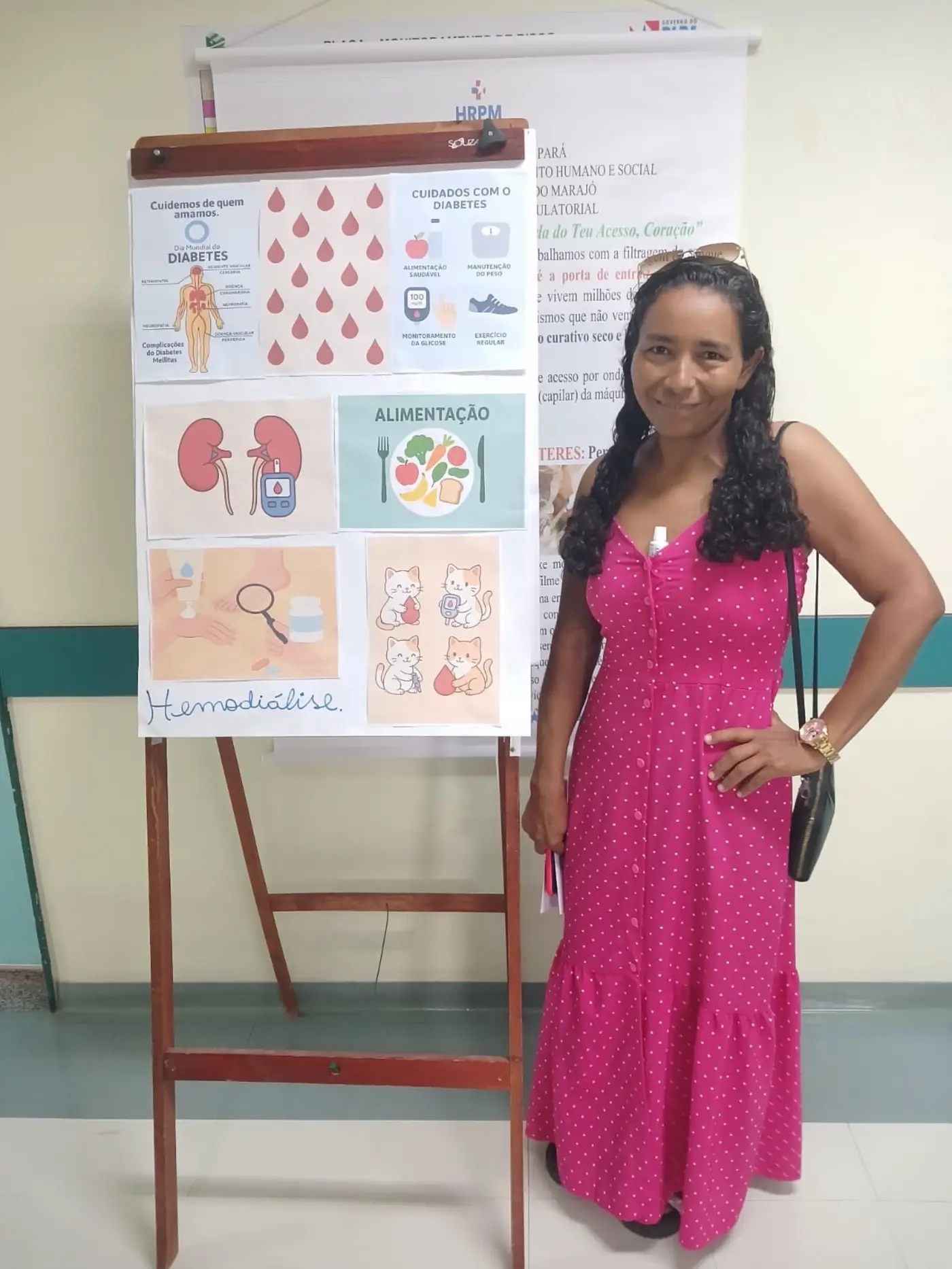 Aprovação - Durante a ação educativa realizada no hospital, a paciente Marilucia Pantoja Gomes, 38 anos, falou sobre a relevância da iniciativa e compartilhou um pouco de sua experiência no tratamento de hemodiálise, que realiza há quase dois anos no HRPM.