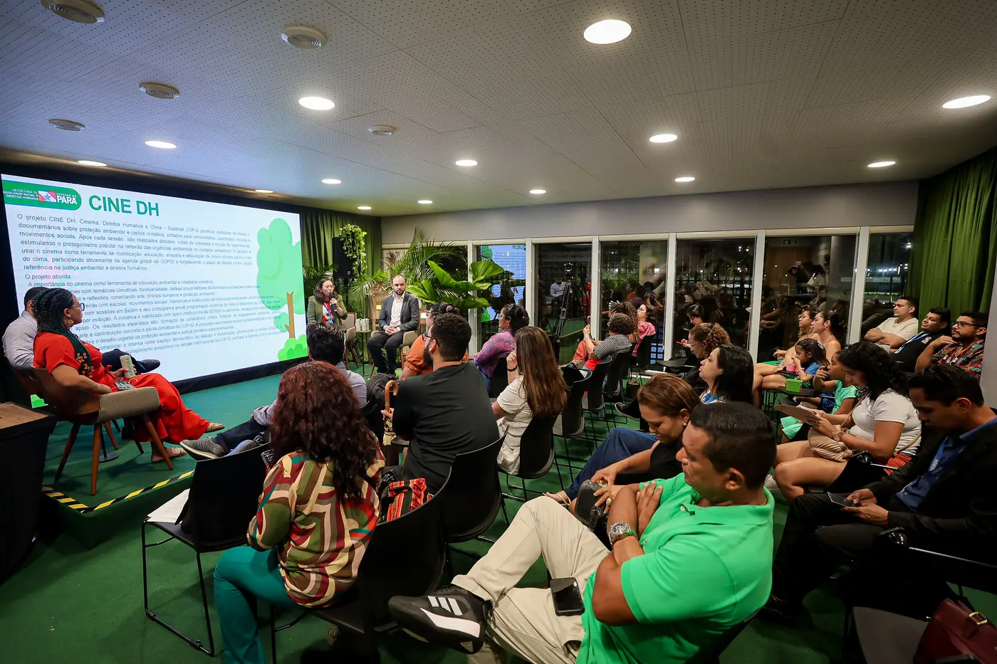 A Secretaria de Igualdade Racial e Direitos Humanos (Seirdh) participou, na terça-feira (18), de mais um dia de programação oficial da COP30, em Belém, apresentando ao público o projeto Cine DH: Cinema, Direitos Humanos e Clima – Especial COP30. A iniciativa integra a agenda estadual para fortalecer debates sobre proteção ambiental, educação climática e mobilização social no contexto amazônico.