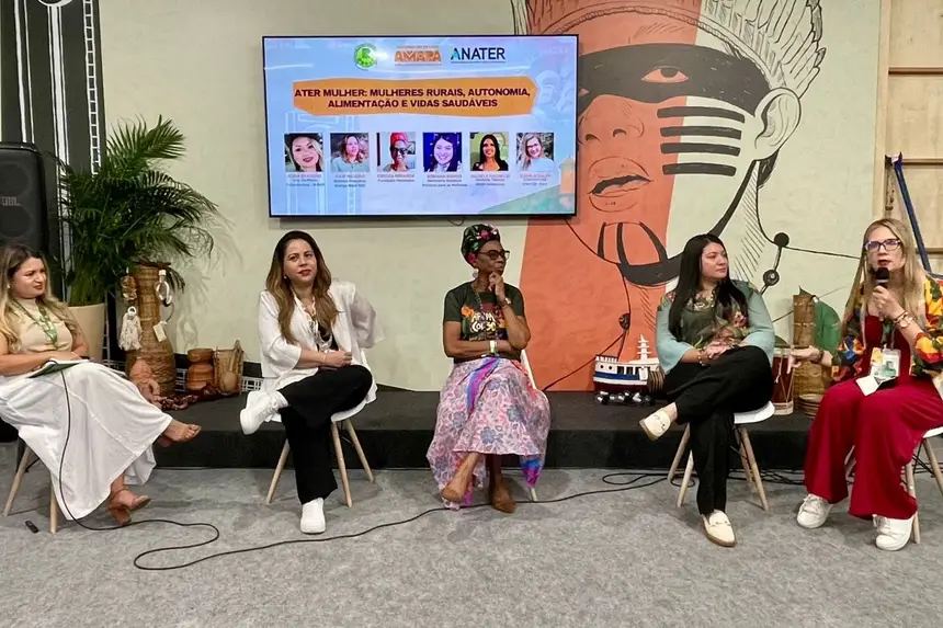 O protagonismo feminino na Assistência Técnica e Extensão Rural foi destaque em um painel, na Green Zone, na manhã desta quarta-feira (19), durante a programação da Conferência das Nações Unidas sobre Mudança Climática do Clima (COP30), em Belém.