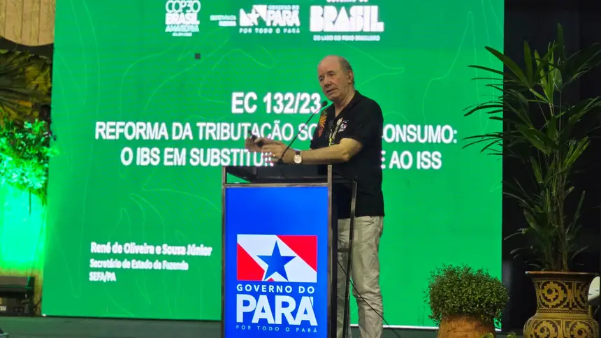 O secretário de Estado da Fazenda, René Sousa Júnior, abordou nesta quinta-feira (20), dentro da programação do Pavilhão Pará-Municípios, o tema “Impactos da Reforma da Tributação”, repassando informações a gestores públicos e técnicos das áreas de finanças, planejamento e arrecadação das prefeituras.