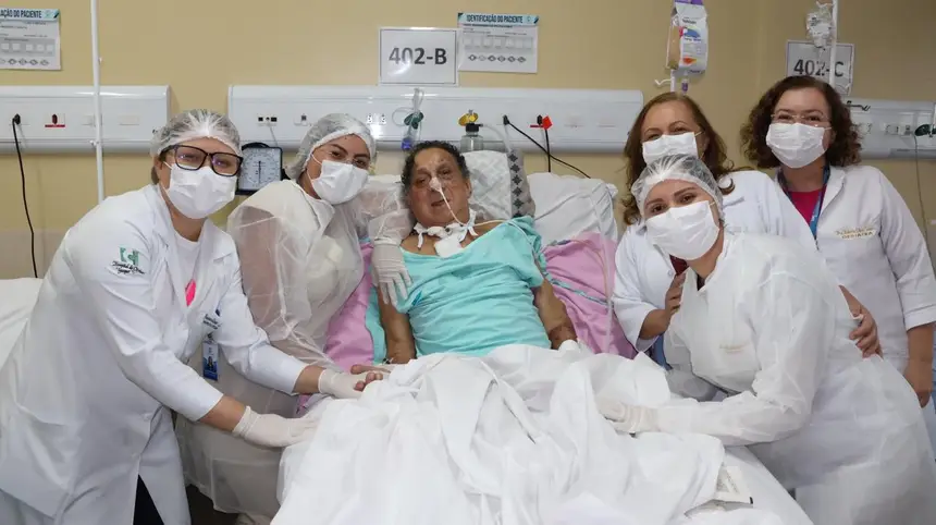 Para ela, o cuidado da equipe se transformou em vínculo afetivo. “Elas têm um cuidado todo especial com ele, como se fosse o pai delas, um membro da família. Meu esposo não tem filho, por isso eu fico aqui com ele. Mas como eu falei pra ele: você sempre teve o desejo de ser pai e olha que ganhou tantas filhas aqui. E os meninos também. Os médicos, as médicas… todas são maravilhosas. Elas têm acolhido a gente muito legal. O Hospital de Clínicas está de parabéns junto com a equipe”, disse emocionada.