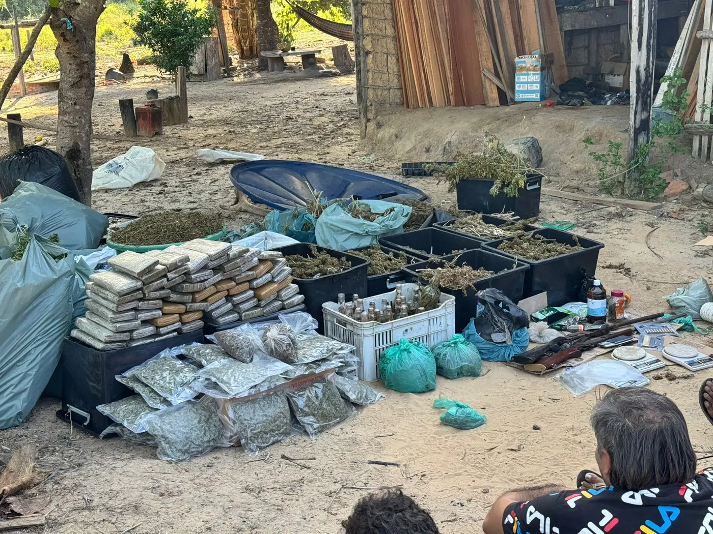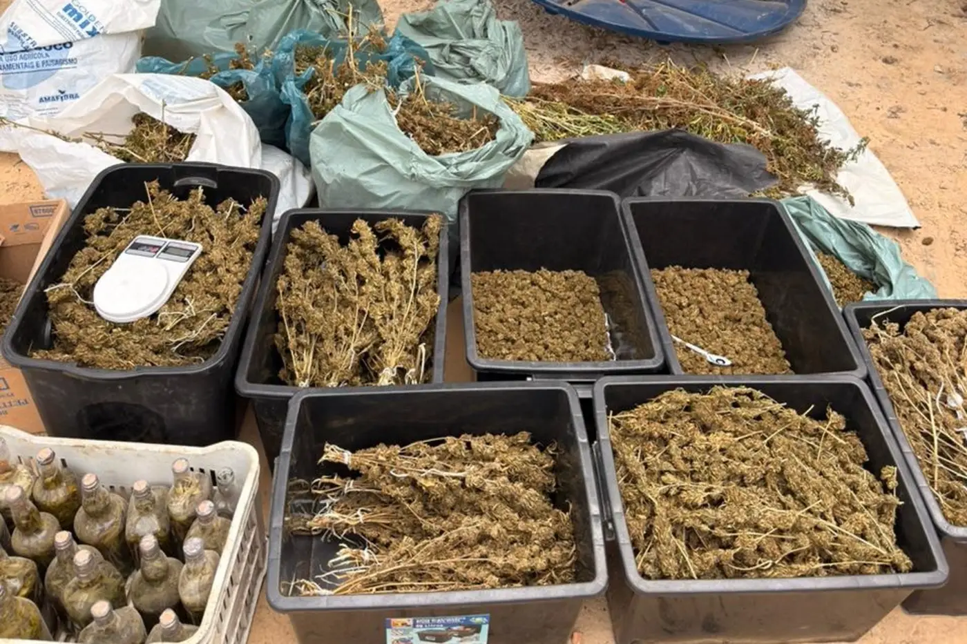 “Como saldo da operação, temos a apreensão de duas pistolas, quatro armas de fabricação artesanal, cerca de 263 quilos de maconha, 12 aparelhos celulares, cerca de 50 munições e 45 cartuchos de diversos calibres, um rolo de barbante, sete balanças de precisão, três tesouras de poda e duas caminhonetes, além da prisão de nove pessoas, sendo oito homens e uma mulher”, finalizou o superintendente.